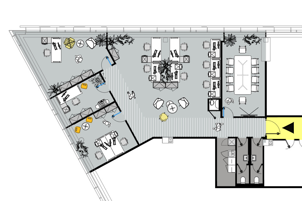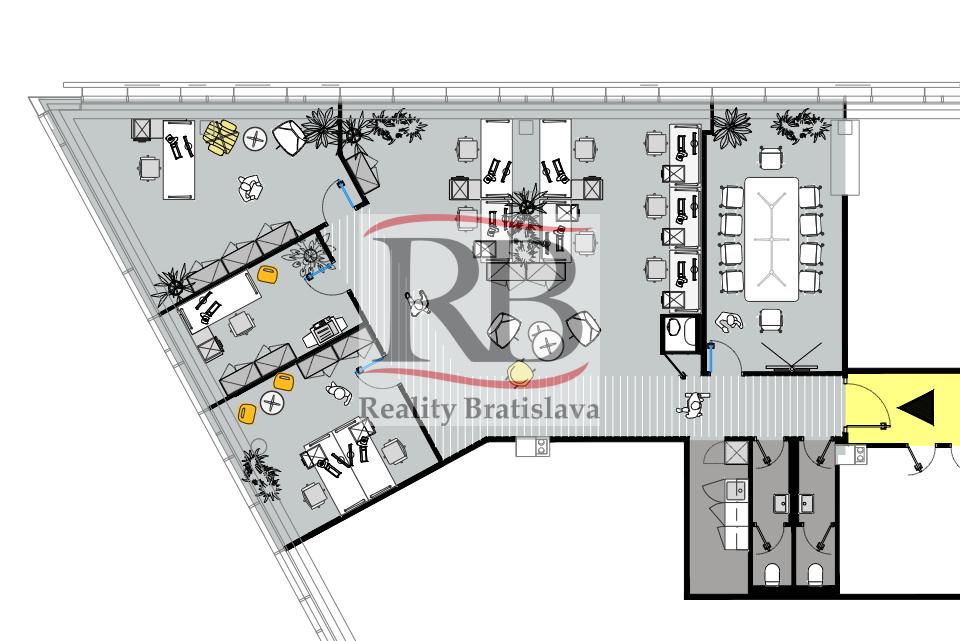 K dispozícii je viacero celkov od cca 120 m² – 1600 m². Priestory budú kompletne vybudované podľa požiadaviek klienta v rozsahu štandardu budovy.