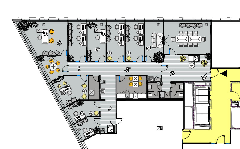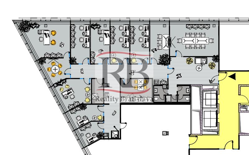 K dispozícii je viacero celkov od cca 120 m² – 1600 m². Priestory budú kompletne vybudované podľa požiadaviek klienta v rozsahu štandardu budovy.