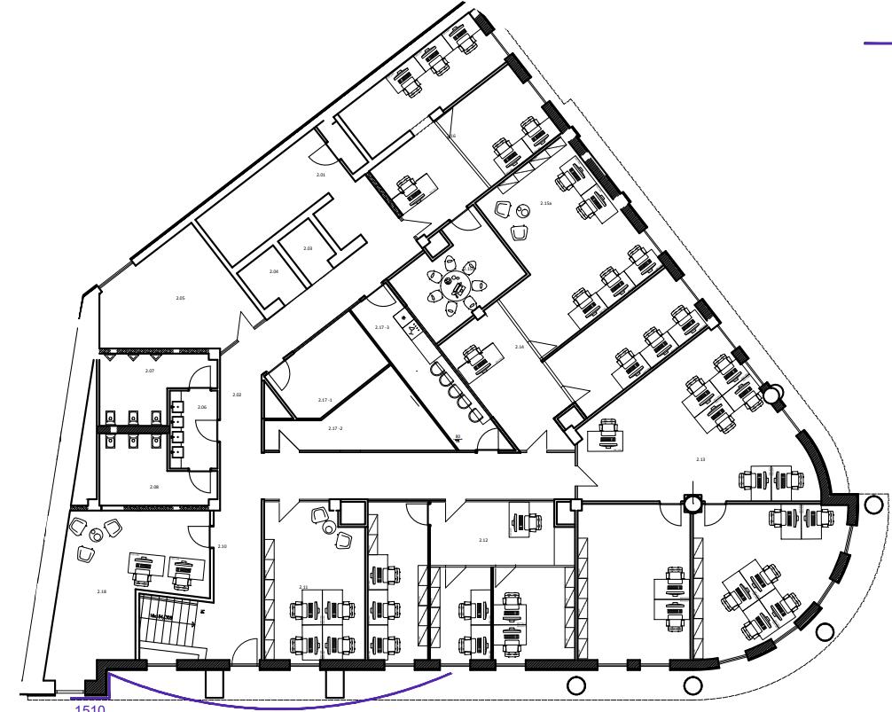K dispozícií je celé 2.NP (aj výťah) o celkovej výmere 512,92m2. Priestory sú dispozične rozdelené na 7 administratívnych celkov (od 21,33m2 – 103,49m2), zasadačky, sociálne zázemia, kuchynky, spoloč. priestory a pod...