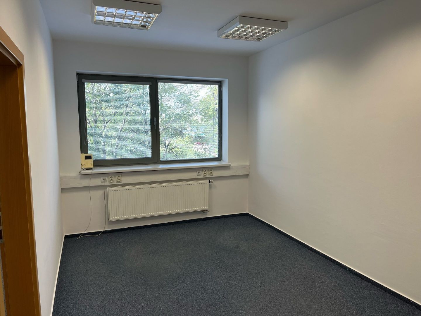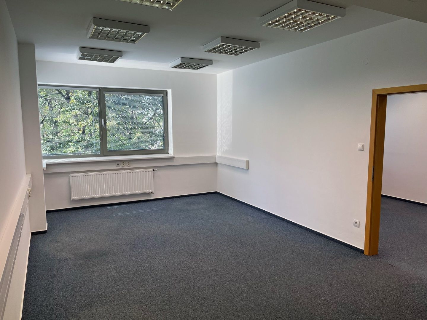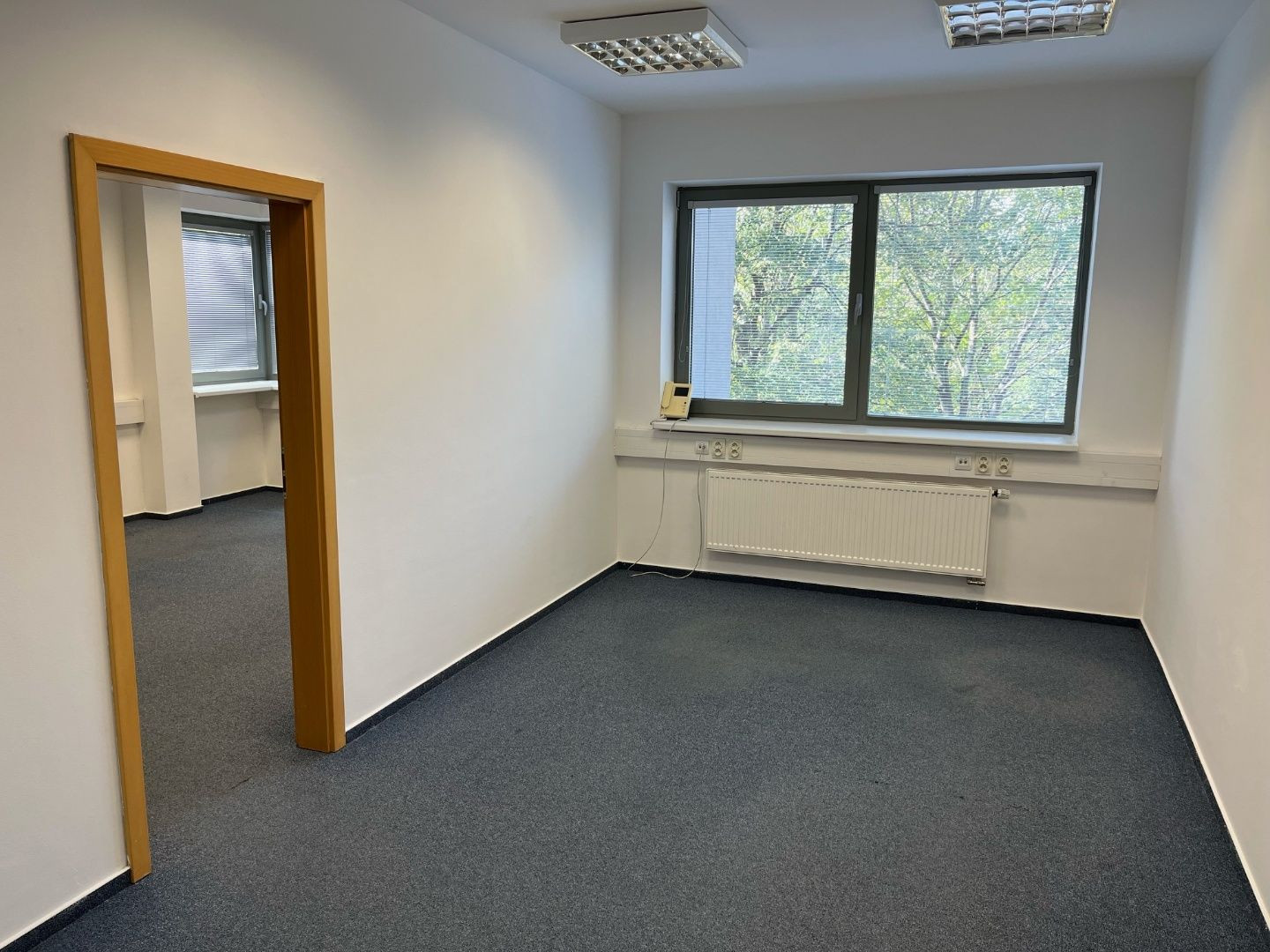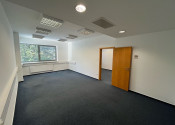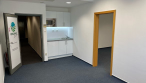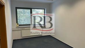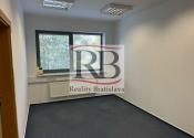 Dispozične pozostávajú z dvoch kancelárii. Jedna z nich má zabudovanú kuchynskú linku. Okná sú otočené do kľudnej zelene. Na podlahách sú koberce. Budova má výťah a prístup je bezbariérový. Priestor je uzamykateľný, dostupný 24/7, vstup do budovy je na čip. Na chodbe sú k dispozícii toalety.