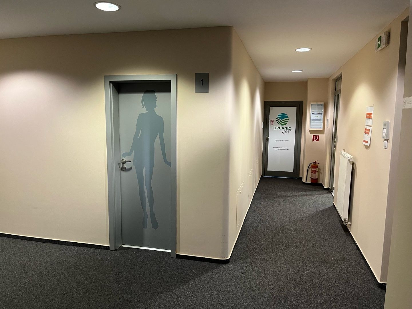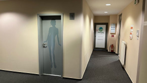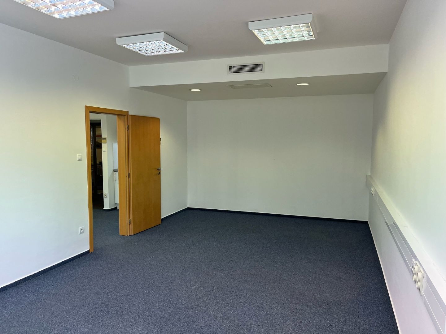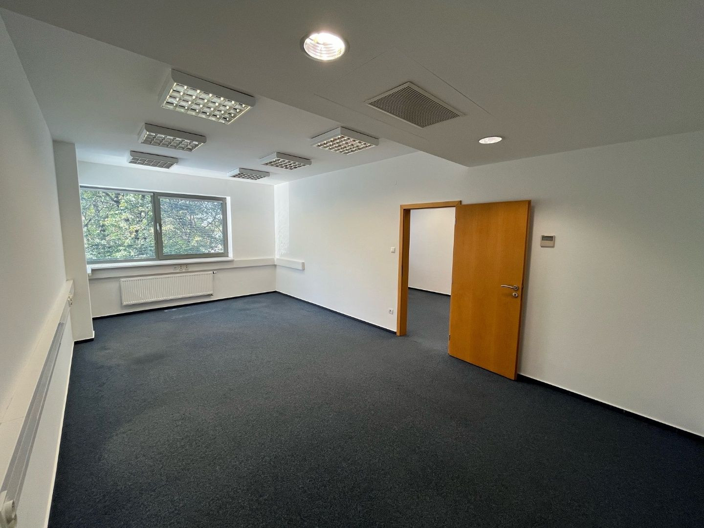 Dispozične pozostávajú z dvoch kancelárii. Jedna z nich má zabudovanú kuchynskú linku. Okná sú otočené do kľudnej zelene. Na podlahách sú koberce. Budova má výťah a prístup je bezbariérový. Priestor je uzamykateľný, dostupný 24/7, vstup do budovy je na čip. Na chodbe sú k dispozícii toalety.