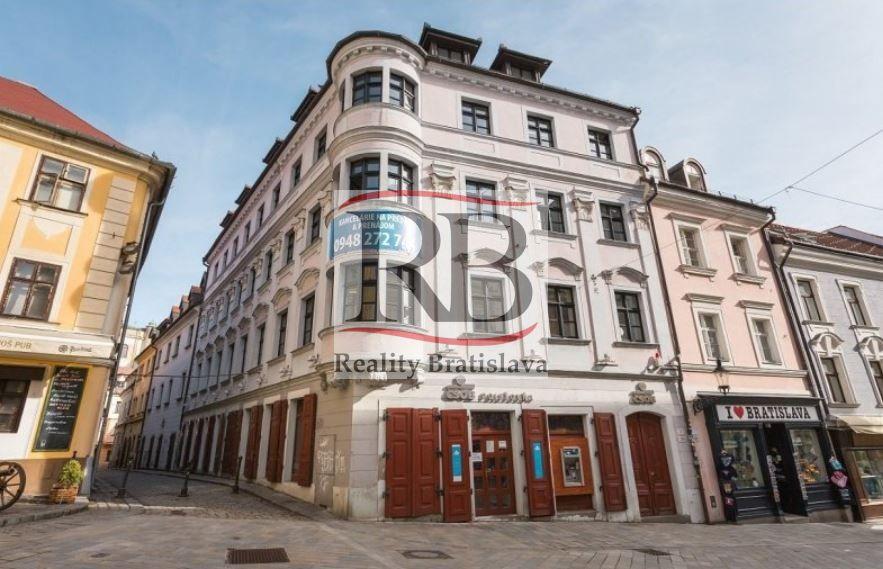 Ponúkame na prenájom priestory v historickom objekte na pešej zóne Starého mesta na Michalskej ulici, neďaleko Michalskej brány, Bratislava 1 – Staré Mesto. Polyfunkčná budova s dvoma samostatnými vchodmi disponuje administratívnymi, obchodnými priestormi a apartmánmi. Má 5 nadzemných podlaží a 2 podzemné podlažia (aj 2x výťah). Objekt je prepojený pasážou s peknou nákupnou galériou..