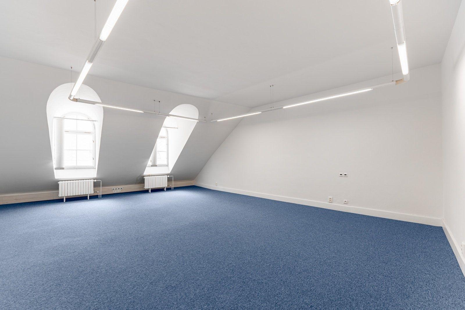 2-kancelária 50,20m2 vr. podielu na spol. priestoroch) - celková cena nájmu vr. prevádzkových nákladov a energií 1.061,60,-€ + DPH. Priestor s výhľadom na Michalskú ulicu,