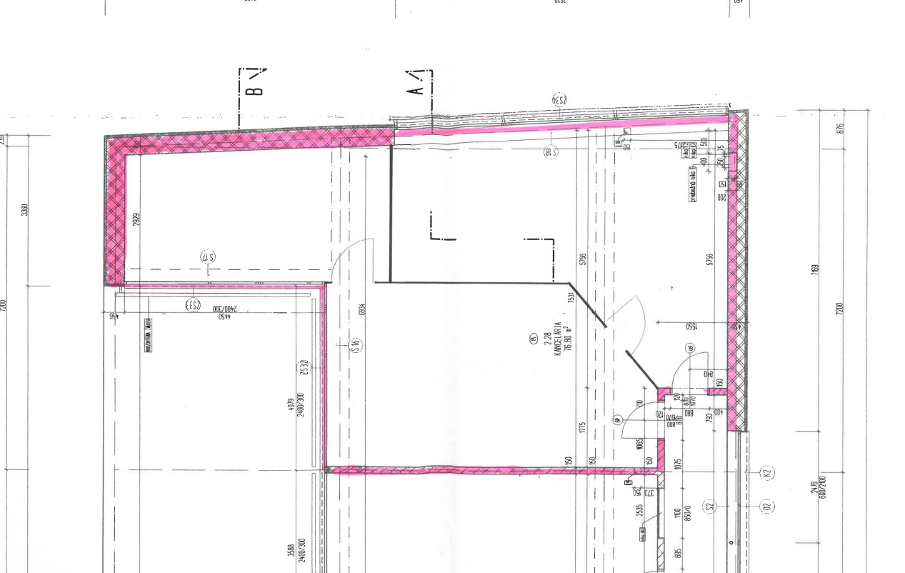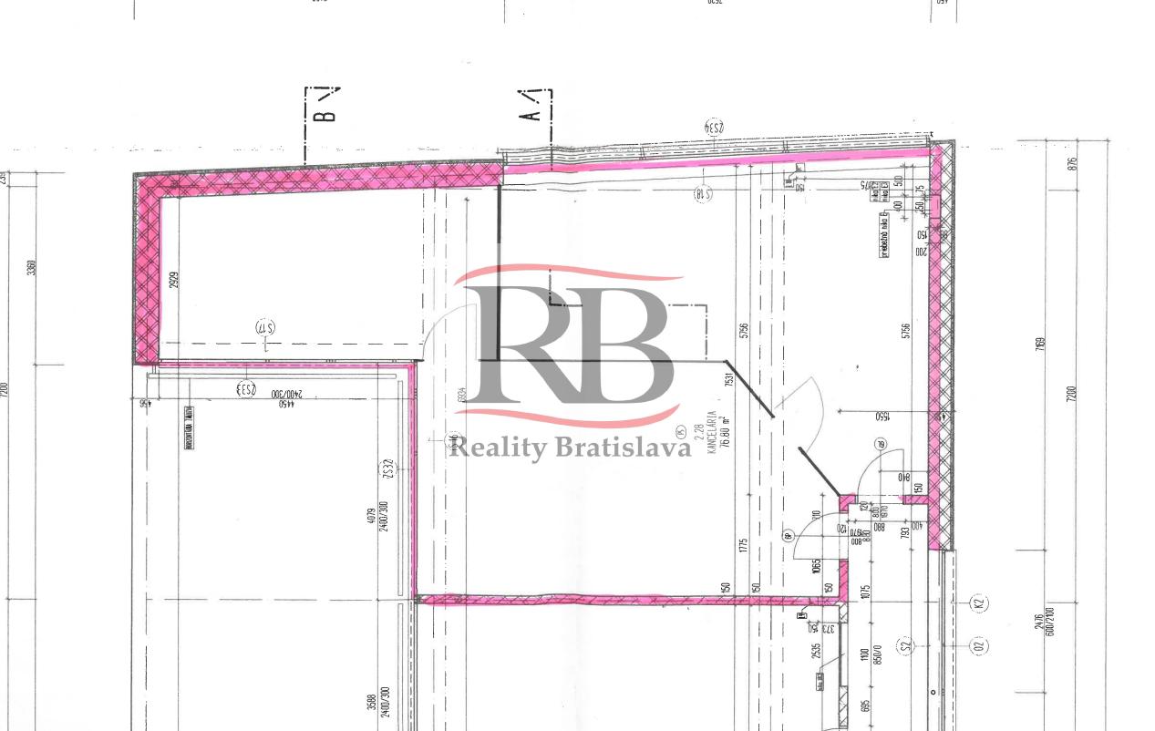 76,8m2 + 4,6m2 podiel na spoločných priestoroch – celok 3 kancelárií s dvoma vstupmi. Cena nájmu 593,25€/mesiac + energie 230,83€/mesiac. Spolu 824,08€/mesiac bez DPH.
