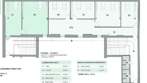 151,54m2 priestor: chodba a 5 samostatných kancelárií.