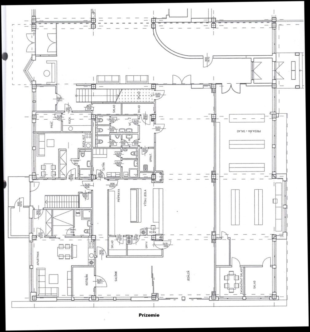 Polyfunkčná budova podlahovej plochy 1474 m2 plus 171 m2 suterénnych priestorov, je na prízemí o podlahovej ploche 681 m2 využívaná na gastro prevádzku, administratívu, obchodné prevádzky, recepciu a 2 ubytovacie zariadenia apartmánového typu s vlastným vstupom.