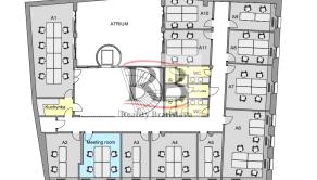 Office A1 (kapacita 8 miest), 57,76m2 vr. podielu. CENA nájmu vr. energií, internetu a DPH = 1.210 €/mesiac.