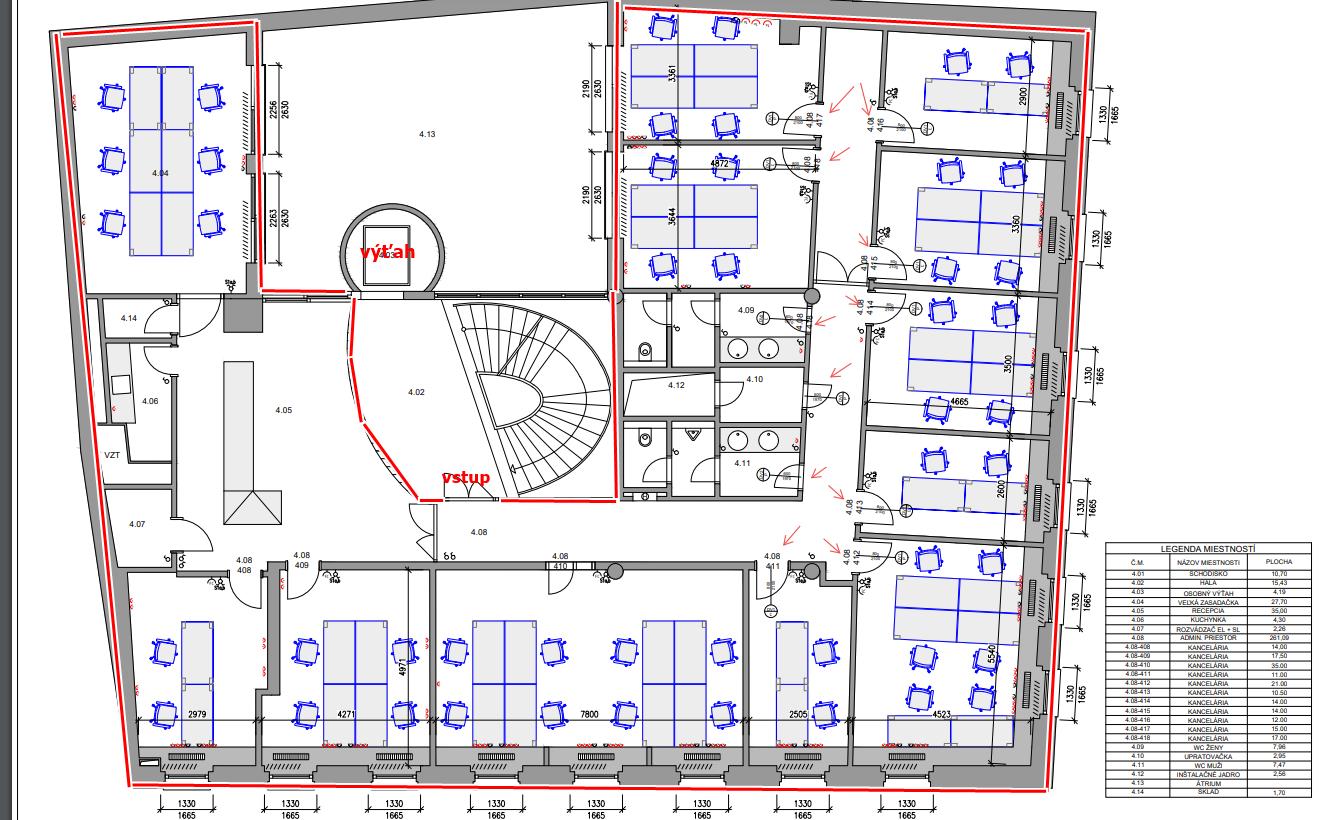 4.NP: 58-330m2 (3-kancelária alebo celé podlažie)