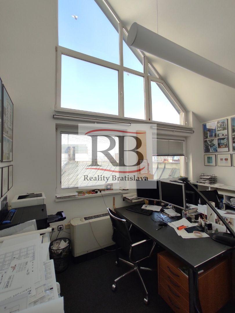 K dispozícii je svetlá 2-kancelária s kuchynkou na 3.p. (aj výťah) o celkovej ploche 70,80m². Sú to reprezentatívne a dizajnové kancelárie, s atypickými oknami.