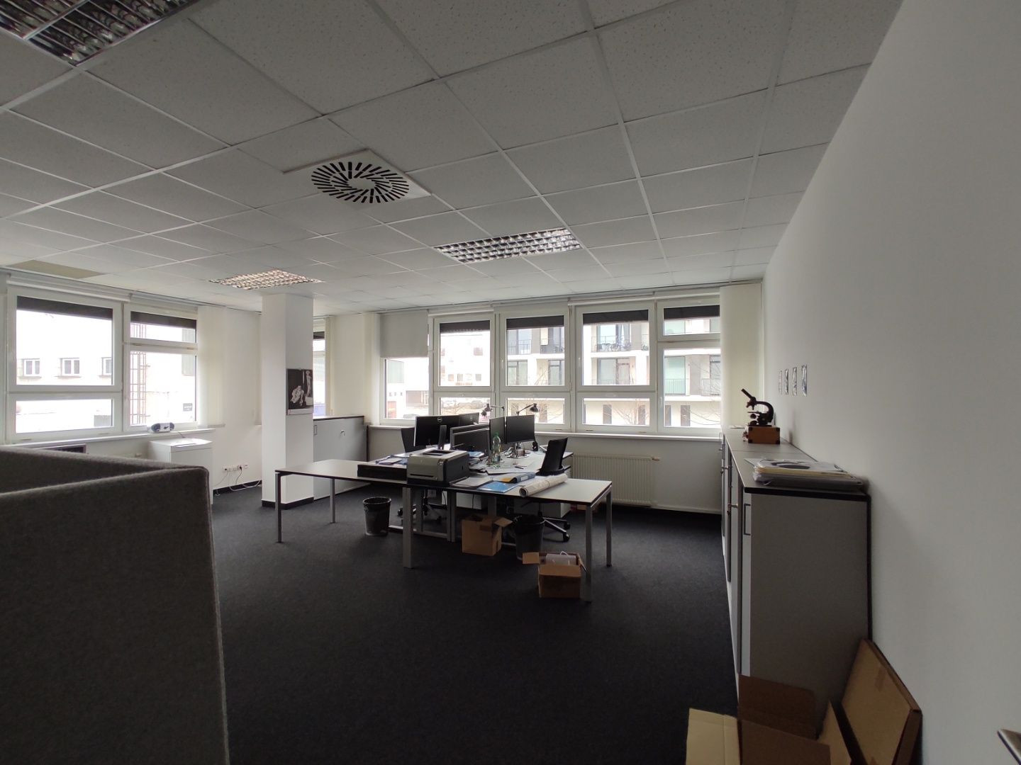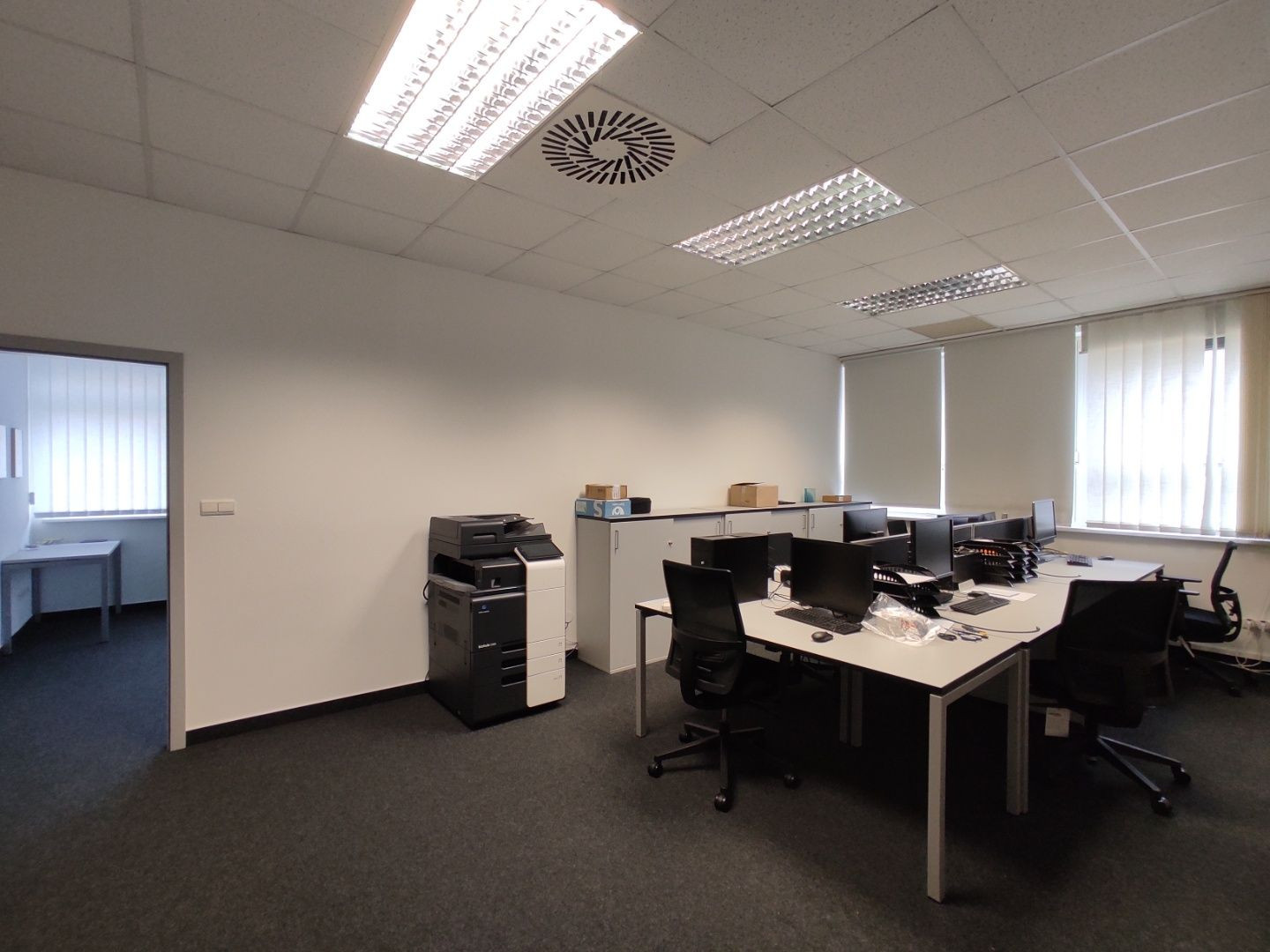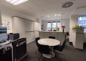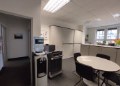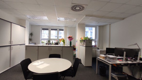 K dispozícii je priestor na 2.NP (aj výťah) , celkovej výmery 201,4m2. Dispozične sa delí na vstup, zasadačku s prístupom na balkón, 3 priestranné kancelárie, kuchynku a delené pánske a dámske toalety.