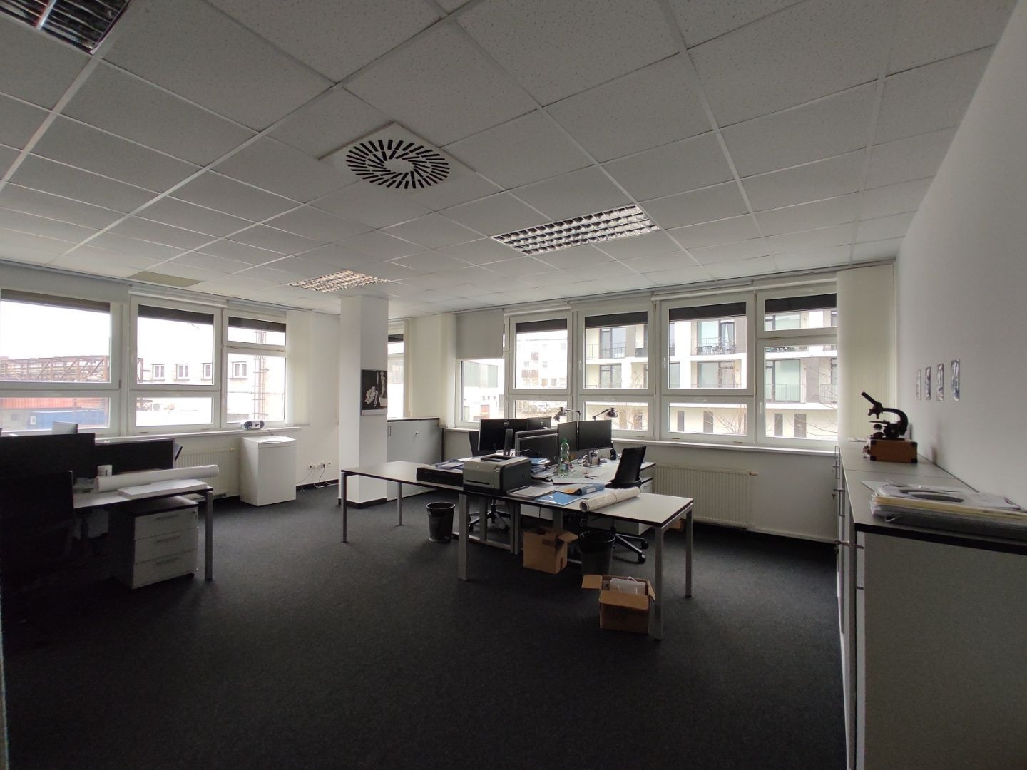 V celej budove sú použité kvalitné materiály. Všetky priestory sú vybavené PC štruktúrovanou kabelážou, klimatizáciou, s vlastnými meradlami el. energie.. Objekt je zabezpečený vlastným bezpečnostným systémom, a tiež každý priestor je vybavený vlastným alarmom, DSS linky a aj možnosť napojenia na optický kábel v budove.