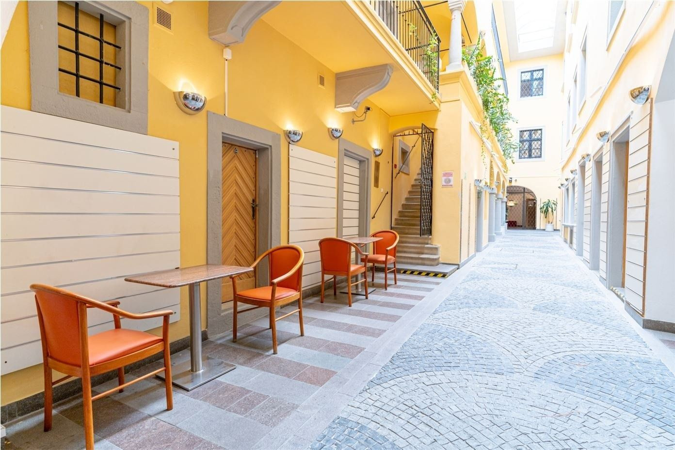 Priestory sú orientované do pasáže aj do Michalskej ulice s výhľadom na Michalskú bránu.
