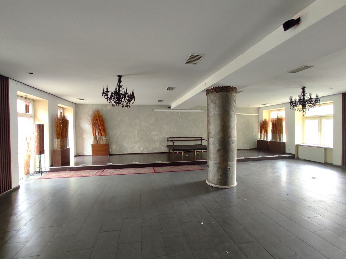 Priestor o celkovej ploche 332,4m2 pozostáva z dvoch prepojených podlaží a to zo zníženého prízemia a vyvýšeného prízemia (prístup po schodoch).