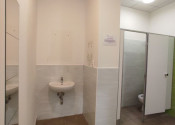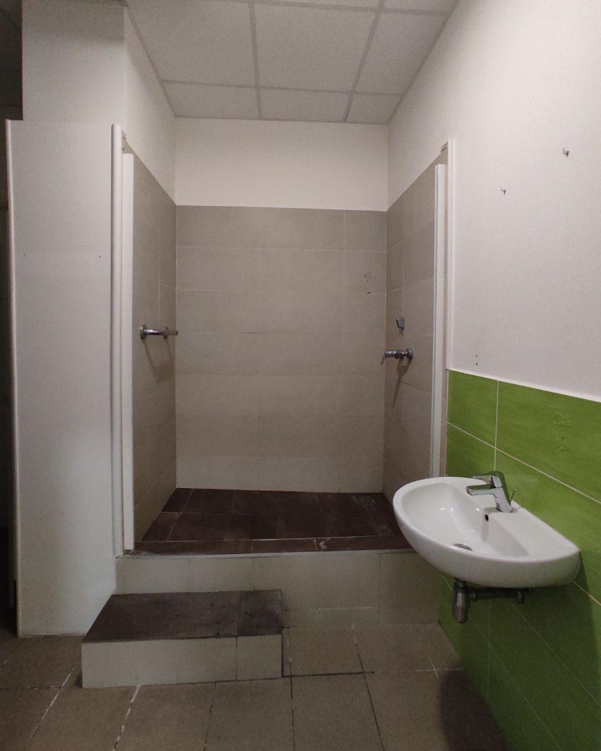 Aktuálne je dispozične rozdelený na viacero miestností (každá s umývadlom), delené pánske a dámske šatne (sprchy, toalety), kancelárie a pod.. Možnosť meniť dispozíciu.
