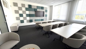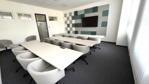 2-kancelária 47,36m2 + 5,68m2 podiel na spol. priestoroch (Cena nájmu vr. prevádzkových nákladov je 631,18€ + elektrika + DPH),