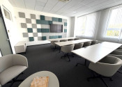 2-kancelária 47,36m2 + 5,68m2 podiel na spol. priestoroch (Cena nájmu vr. prevádzkových nákladov je 631,18€ + elektrika + DPH),