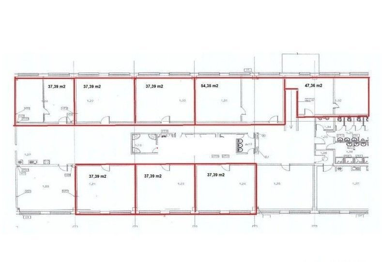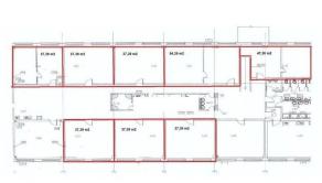 Openspace kancelária 37,39m2 + 4,49m2 podiel na spoločných priestoroch. (Cena nájmu vr. prevádzkových nákladov je 498,37€ + elektrika + DPH),