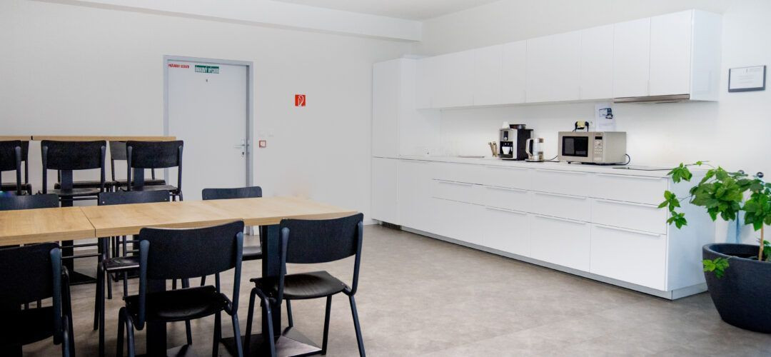 Toalety, kuchynka a zasadačka sú zdieľané na chodbe.