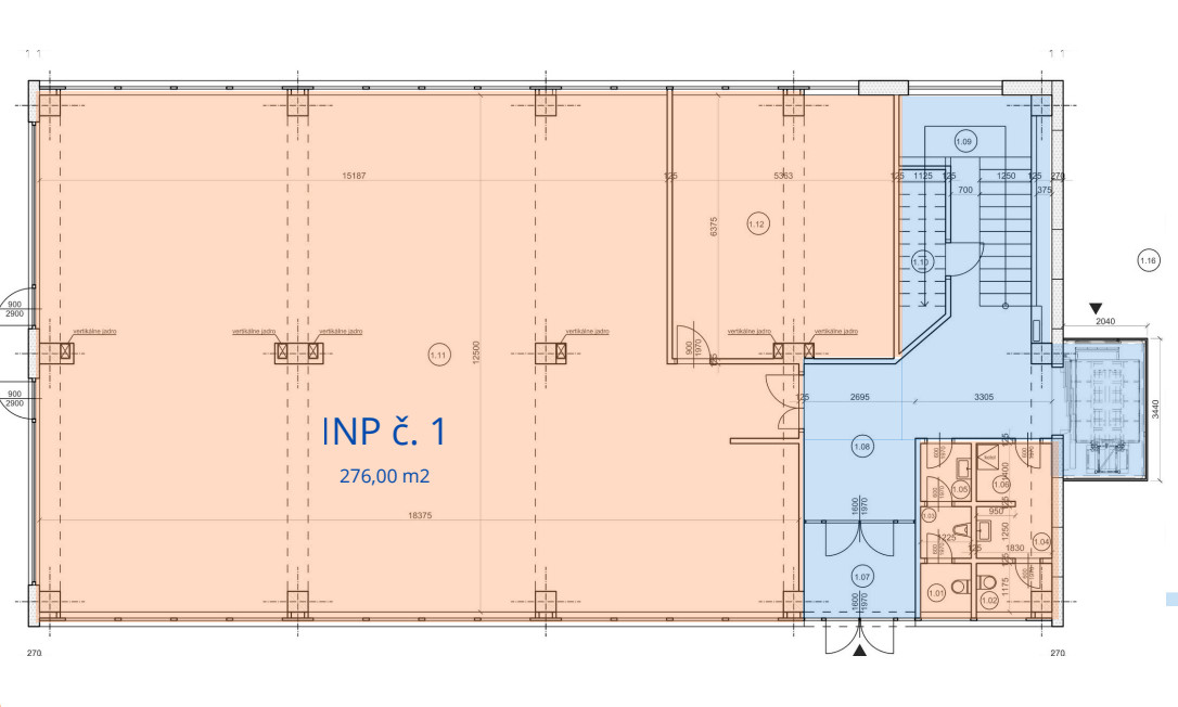 Obchodný priestor o celkovej podlahovej ploche 276m2 sa nachádza na prízemí administratívnej budovy a disponuje vstupom a výkladom priamo do ulice.
