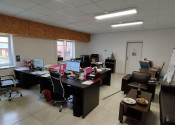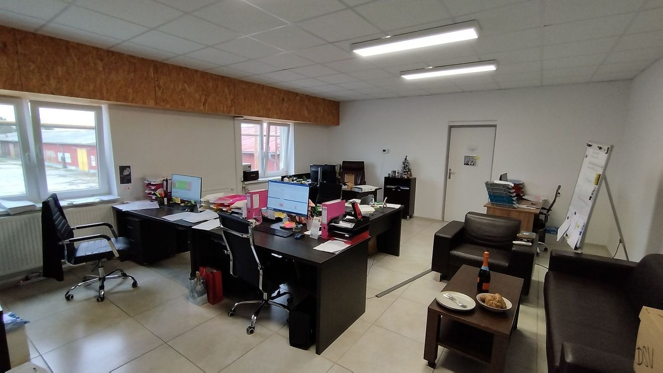 Ku skladovým priestorom patrí aj kancelárska časť o výmere 93,69m2, ktorá je vykurovaná. Nachádza sa tu archív, kancelárie, kuchynka a sociálne zariadenie.