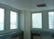 rekonštruované priestory – nové priečky, plávajúce podlahy alebo koberce, žalúzie, stropné podhľady, osvetlenie, plastové okná s fóliou proti prehrievaniu.