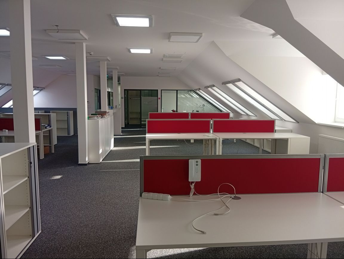 Ponúkame na prenájom klimatizované administratívne priestory nachádzajúce sa v priemyselnom areáli na okraji Trenčína. K dispozícii sú kancelárie a konferenčné miestnosti s rôznymi výmerami od 10 m² do 300 m², s možnosťou prenájmu celku až 1200 m².