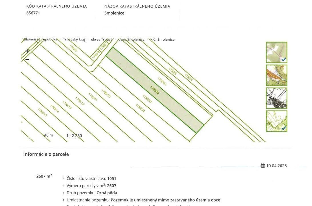 Na predaj orná pôda – Smolenice, 2607 m²