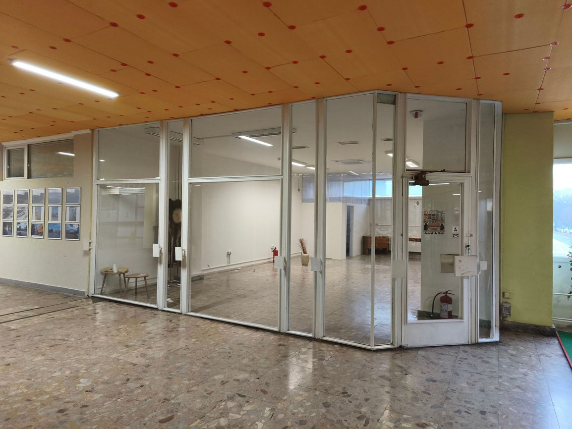 Samotný priestor sa nachádza na 1.poschodí v galérii obchodného domu. Má celkovú výmeru 75 m2 a pozostáva z 1 miestnosti + vlastné sociálne zázemie (toaleta, umývadlo). Predajňa má výklad do galérie.