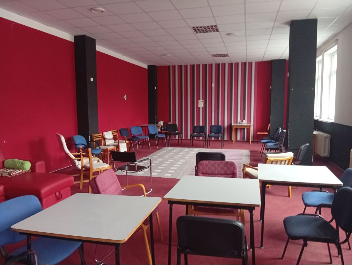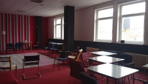 Súčasťou ponúkaných priestorov je vlastný kuchynský kútik s barovým pultom a malá skladová miestnosť. Na poschodí spoločné WC. Priestory sa nachádzajú na druhom poschodí, bez výťahu. V hodné pre kluby, krúžky, záujmové aktivity, ale aj ako špecifická kancelária (priestor v minulosti slúžil ako kartová herňa).