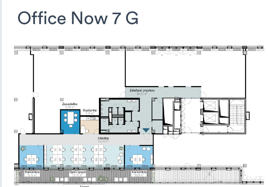 K dispozícii sú priestory na 7.NP - OFFICE NOW E,S,G: