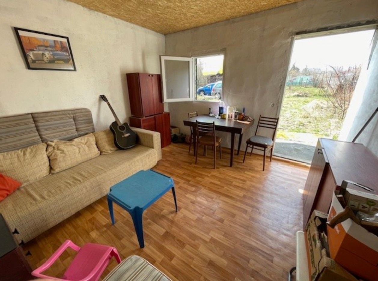Na pozemku sa nachádza murovaný záhradný domček (cca 10 m²) postavený z Ytongu, vybavený pecou a zariadením vrátane nepoužívaného rozkladacieho gauča. Domček je zabezpečený kovovými dverami s dvojitým zámkom a plastovým oknom s kovovou okenicou, čo poskytuje vysokú úroveň bezpečnosti. K dispozícii je aj menší podkrovný priestor vhodný na skladovanie.