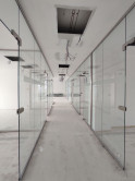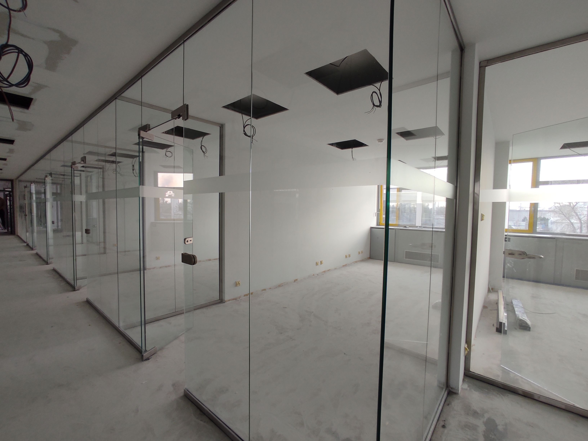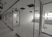 Priestory sú delené nadštandardnými sklenenými priečkami.