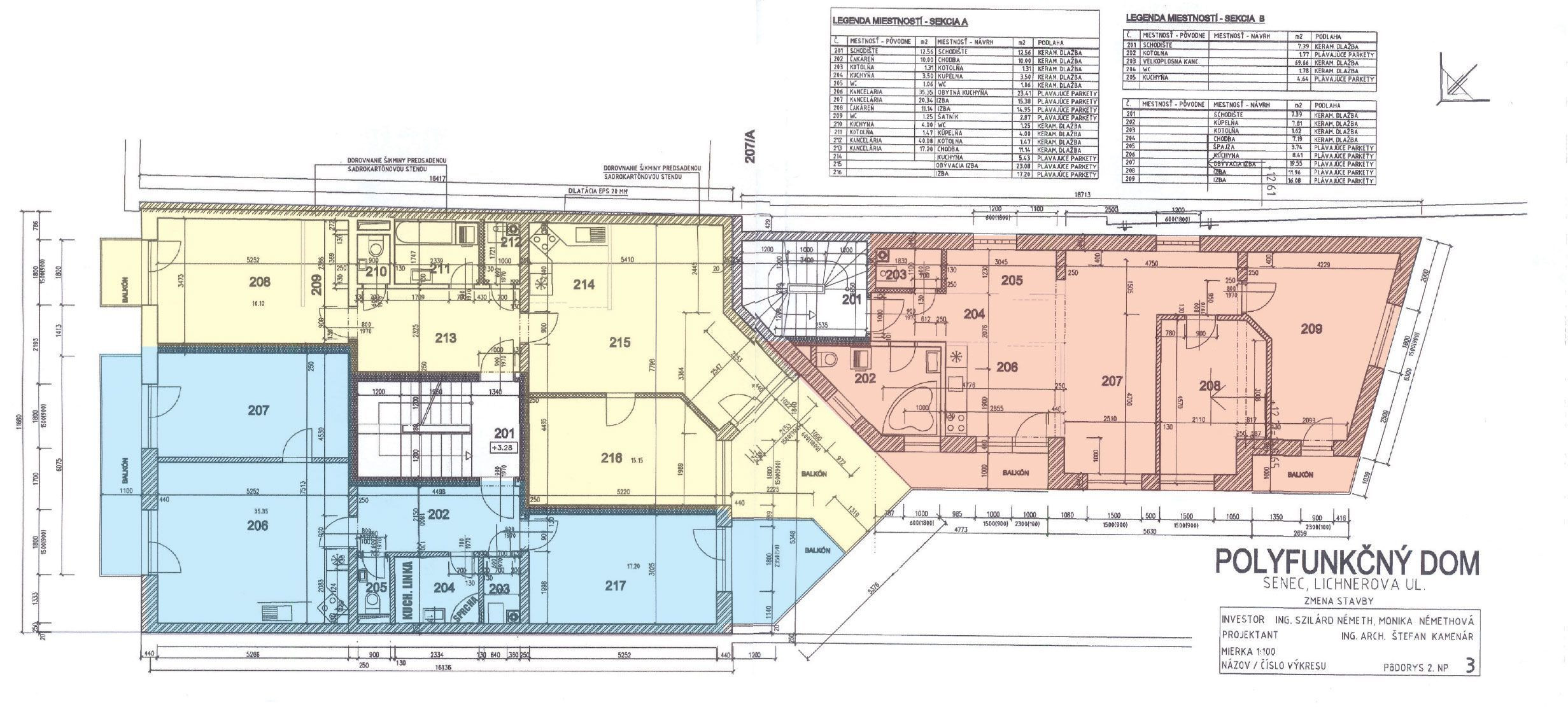 Kancelária č. 208 s výmerou 18,22m2 s balkónom na Lichnerovu ulicu a plus spoločné priestory – WC, sprcha, kuchynka, chodba, sklad, technická miestnosť.