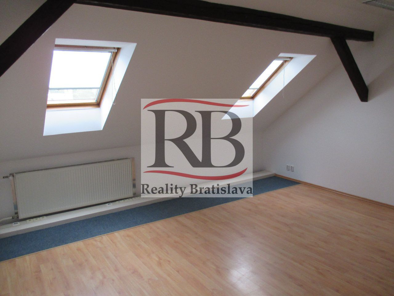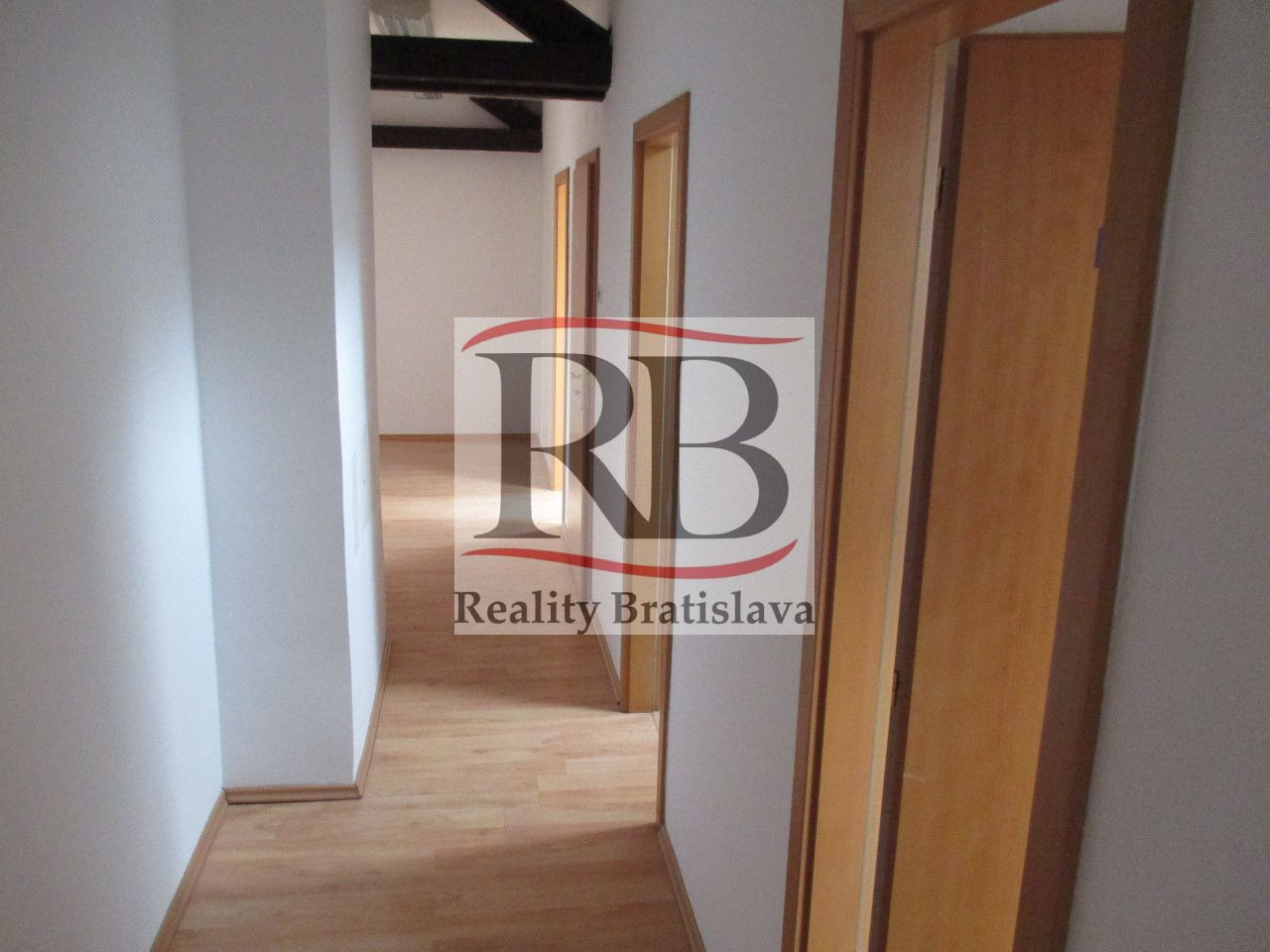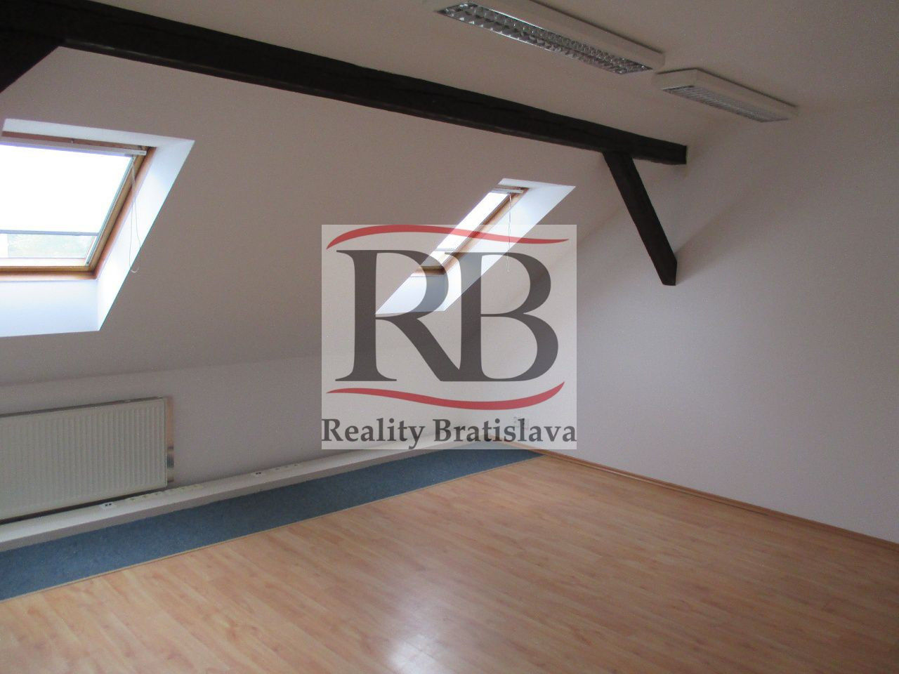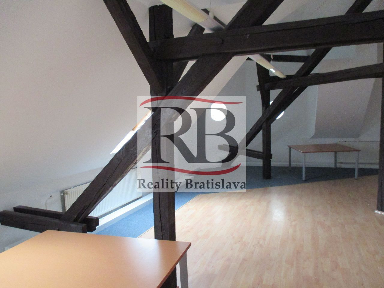 Ponúkame na prenájom reprezentatívne kancelárske priestory v Starom Meste na ulici Palisády. Priestory sa nachádzajú v 4 podlažnej, kompletne zrekonštruovanej historickej budove na 4.NP (podkrovie) s výmerou 367 m² - dispozične 7x kancelária, zázemie, wc. Priestory je možne rozdeliť aj na menšie celky. Parkovanie je možné prenajať vo dvore. Objekt je klimatizovaný, s recepciou, optikou, štruktúrovanou kabelážou. Cena prenájmu priestorov je rokovateľná (v závislosti od výmery a dĺžky nájmu) cca. 7,9€ / m²/ mesačne bez DPH + správa objektu a zálohy energií cca. 3,5€ / m²/ mesačne bez DPH. Viac informácií u makléra. Záujemca neplatí províziu RK.