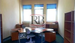 Ponúkame na prenájom klimatizovaný kancelársky priestor na Bojnickej ul. v BA III - Nové Mesto s celkovou úžitkovou plochou 26,26m², situovaný na 1.poschodí dvojpodlažnej administratívnej budovy v stráženom priemyselnom areáli s výhodnou polohou pri hlavnom dopravnom ťahu s výbornou dostupnosťou na D1 a s prístupom 24/7. Štandard : plastové okná, podlaha - koberec, klimatizácia, kancelársky nábytok, štrukturovaná kabeláž, spoločné WC, kuchynka. Možnosť prenájmu parkovacích miest v areáli. Cena prenájmu je 8,13-€ /m²/mesiac vrátane nákladov na energie a služby+DPH. Províziu RK neplatíte. Voľné ihneď. V prípade záujmu o obhliadku priestorov kontaktujte uvedeného makléra.