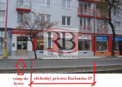 Ponúkame na prenájom obchodný priestor na Račianskej ulici v Novom meste, Bratislava III.   Priestor má výmeru 132 m²,  nachádza sa na prízemí  so vstupom z ulice , s výkladom po celej šírke. Dispozícia priestoru pozostáva z predajnej plochy 99,6 m², skladovej plochy 20,66 m² a  sociálneho zariadenia. Vhodný na prevádzku obchodu  - maloobchodná predajňa, kancelária, showroom, eshop, vzorkovňa  a pod. Prevádzka reštauračného zariadenia nie je možná. Úpravy priestoru sú možné na vlastné náklady po dohode s prenajímateľom.