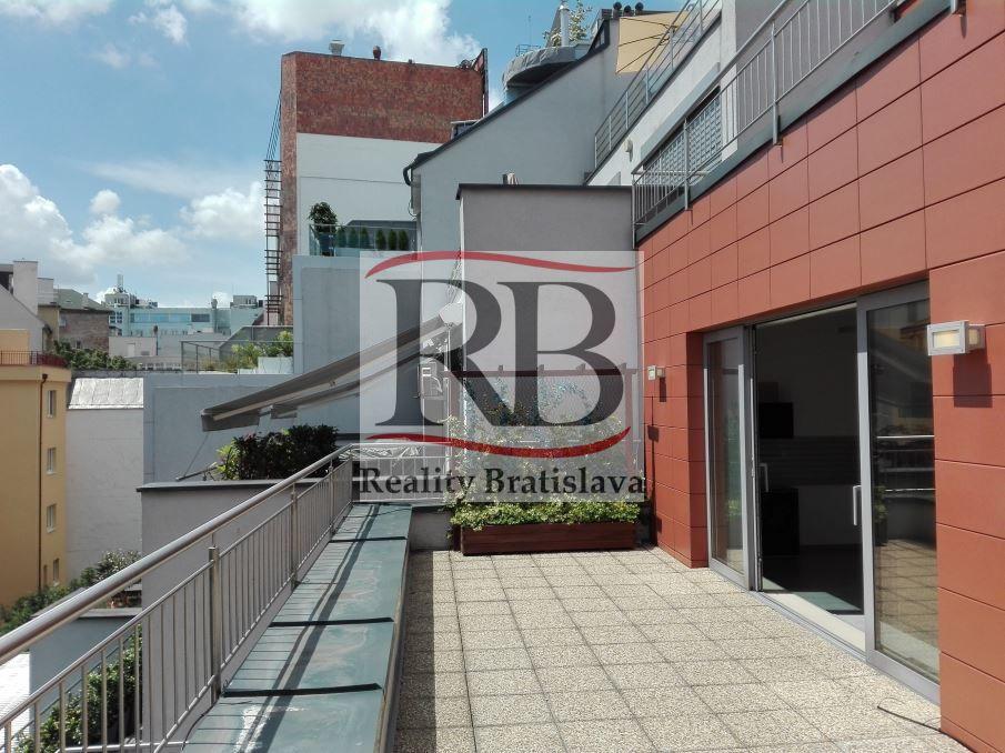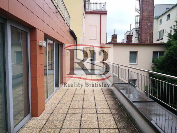 Ide o celok výmery 139 m2 na 3.poschodí/5 (výťah) vrátane 36 m2 terasy. Priestor pozostáva z 3 miestností, 2xWC, kuchynky a terasy so vstupom z 2 miestností. Priestory sú výborne dostupné autom ako aj MHD. Možné vyhradené parkovacie miesto za 140 €/miesto bez DPH. Možný nájom aj s nábytkom.